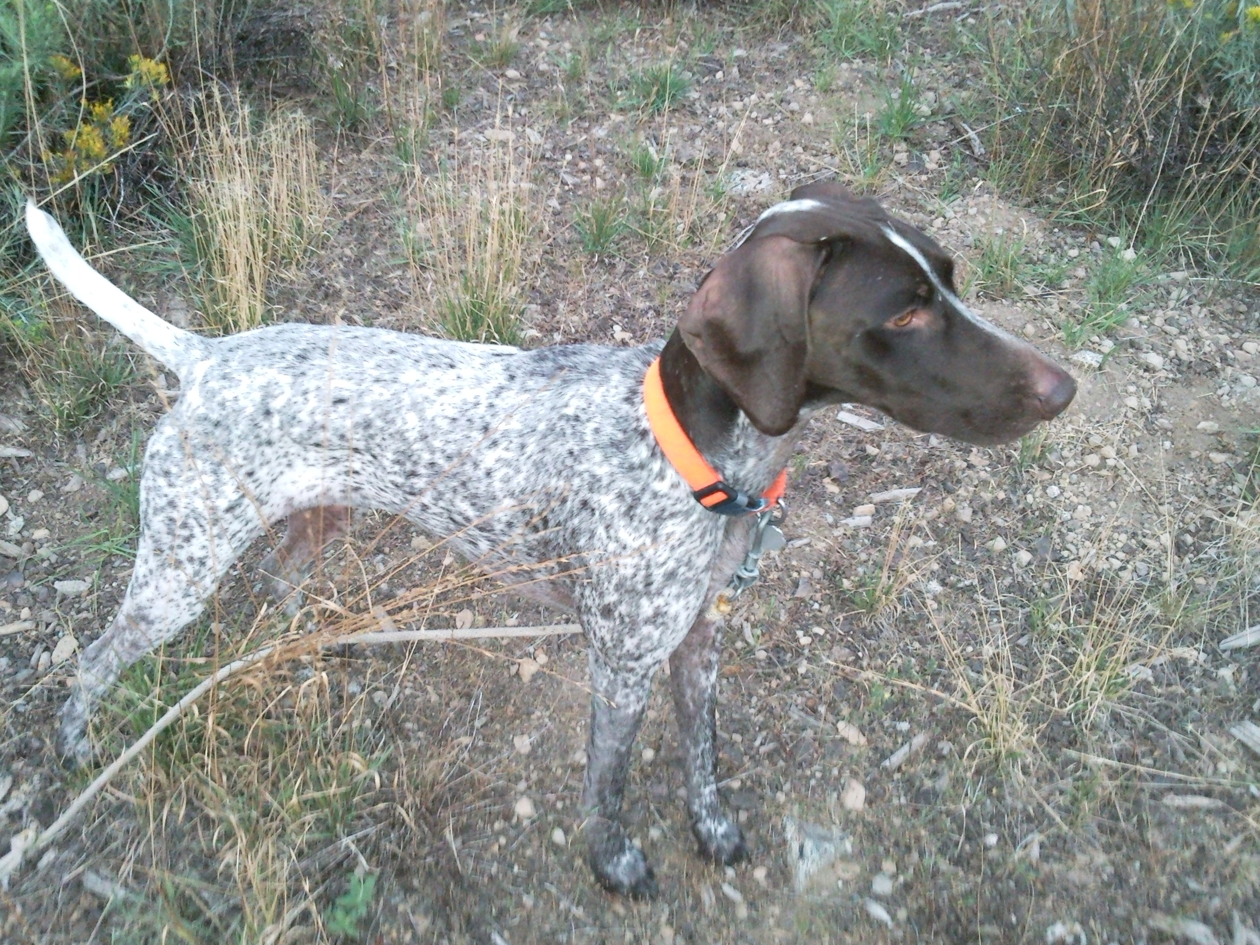 Almost 12 years ago in early October, my friend and I went on a trip near McDermitt, Nevada to hunt Hungarian Partridge. Lori and I added a German shorthair puppy to our family earlier that spring. His name was Archie and he joined us on that trip.  At 10 months old he had learned to point and fetch birds while hunting quail and grouse, but there was no way of preparing for his experience in McDermitt.