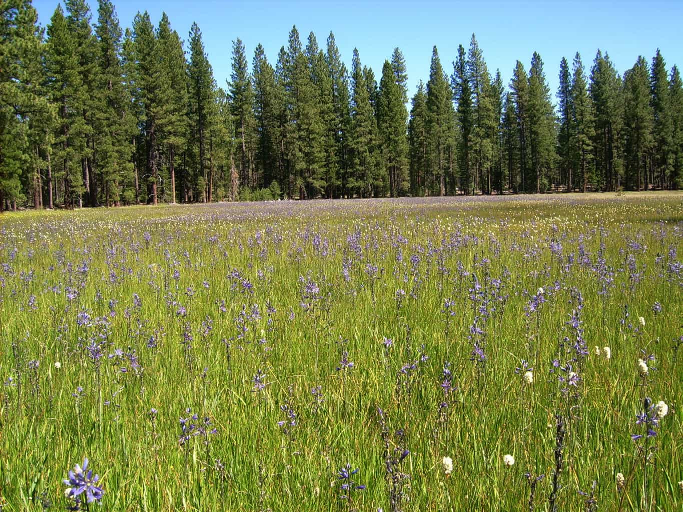 Today, the Nimíipuu people still harvest smaller amounts of Quamash bulbs. The options for other folks to do this are limited and are not encouraged since the few meadow and prairie habitats that this species still grows in, are wetland habitats. Also, another species that commonly grows in these same habitats is the creamy-white flowering relative called Meadow Deathcamas, species Zigadenus venenosus (i.e., venomous). The bulbs of this poisonous plant are not distinguishable from Quamash bulbs, and I have seen them growing intermixed in mountain meadows.