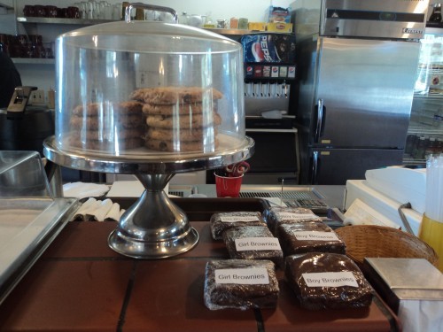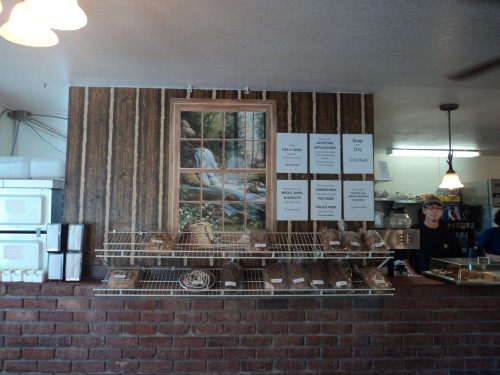 Tempting aromas from the outdoor smoker greeted us in the parking lot and we knew that great things waited us inside. Owners Chuck and Ann Woodman greeted us with a warm smile at the door and the scent of fresh baked sour dough bread enveloped the compact but cozy dining room. Fresh baked goods ranging from icing drizzled danishes to pull part jalapeƱo cheese bread lined the wall. I guessed we wouldn’t be leaving empty handed.