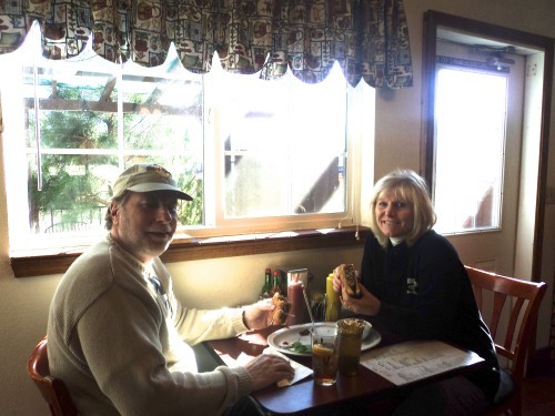 A steaming cup of fresh brewed coffee and a tall glass of iced tea arrived in seconds to wet our whistle. We chatted awhile with the Woodman’s and learned that they too are new to the Old Station area. Seeking more blue skies after living in a rainy area in Oregon, they packed up the family, bought JJ’s Cafe and hung their shingle. For such a remote location, this little roadside diner was hopping on a mid-October afternoon. They say the way to the heart is through the stomach and the Woodman’s have won the hearts of the locals in short order. This charming couple is committed to their ‘farm to fork’ way of thinking and it shows in every sweet or savory bite.