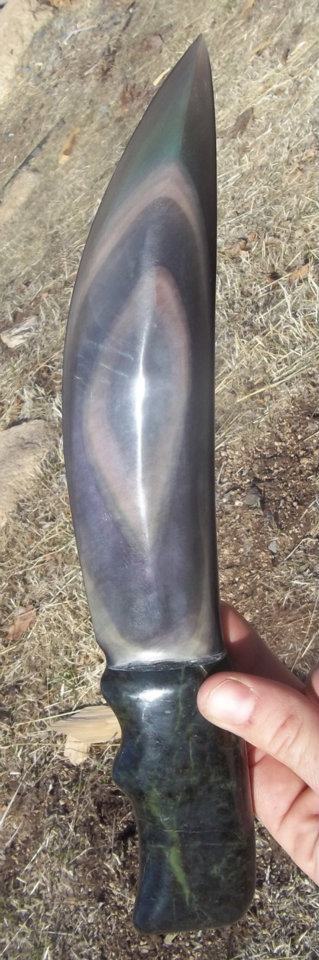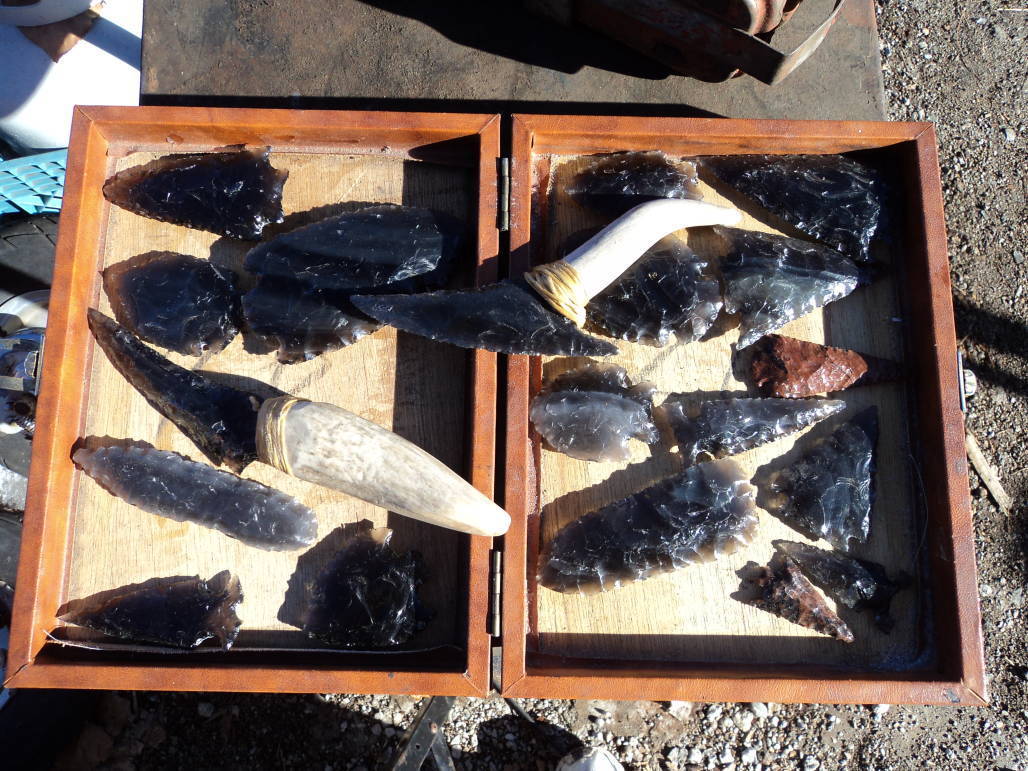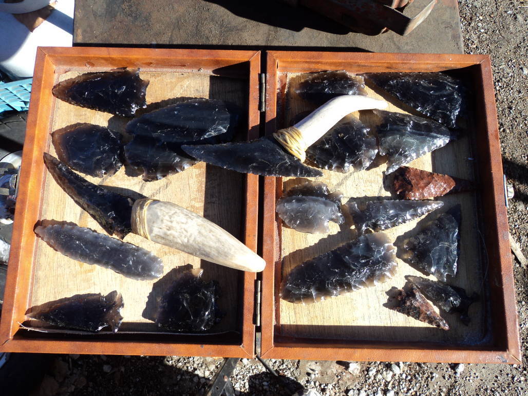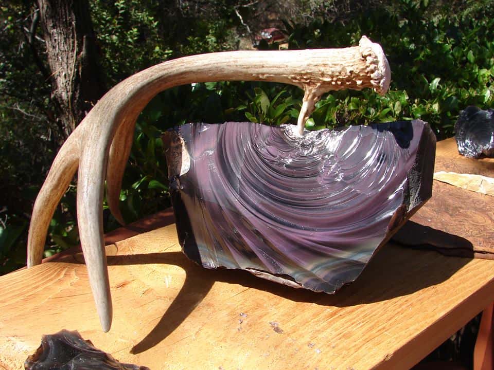 Jeremy gained his modern interest in this ancient art after spending some time with Milford resident Quinn Street of Volcanic Treasures. Street earned a Masters Degree in Geology and mines the beautiful rainbow obsidian from an ancient lava flow in Northern California. A very talented obsidian artist himself,Quinn has passed his knowledge and interest on to many young men in our area, including Mr. Mayes. Arrowheads, knives, free form sculptures, jewelry and many other works of art have been crafted by this wondrous group.