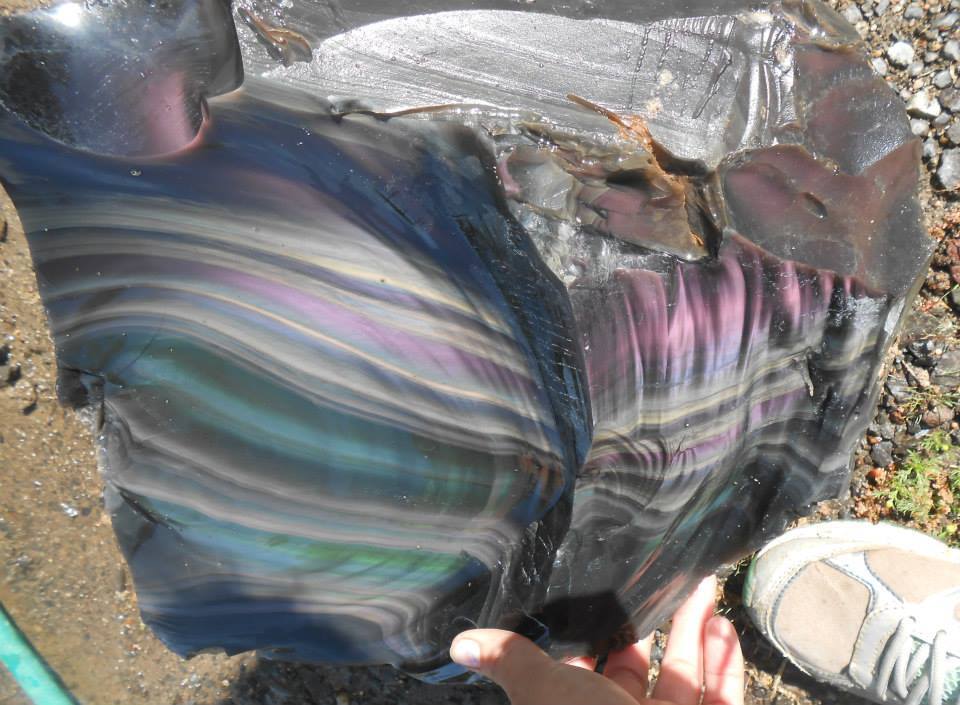 Obsidian is born when molten lava cools rapidly with minimum crystal growth. Forming in a variety of colors from the purest black to the local favorite, rainbow obsidian, formed when magnetite is present in the molten lava flow.