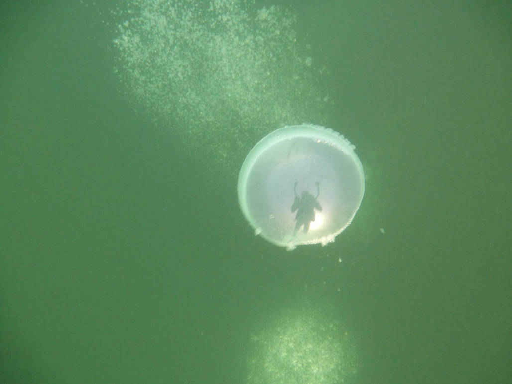 Water and reflection go hand in hand as you can see in the great photo of Eric in the bubble. It may look like another diver swimming closer to the surface, but it is actually Eric reflected by the bubble surface back to his own camera lens. Fascinating!